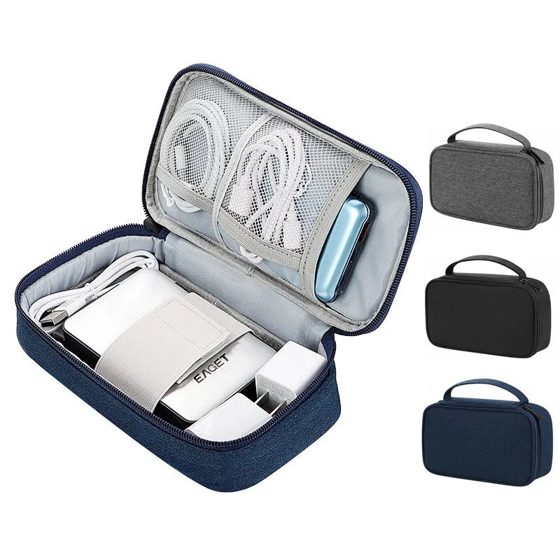 Compact zippered travel case for cables, chargers, power banks, and gadgets. Multipurpose design also works as a cosmetic bag.