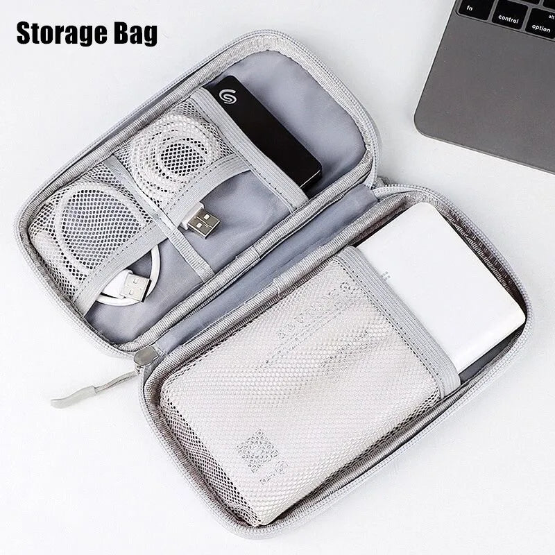 Keep your essentials organized on the go with a multifunctional travel case built for tech and more. The portable bag features elastic straps and mesh pockets to hold USB cables, chargers, earphones, memory cards, and power banks. Its durable zip closure keeps everything secure, while the compact shape fits easily into backpacks or luggage. Versatile enough to double as a cosmetic or accessory bag, it’s an everyday must-have for travel, work, or daily commuting.